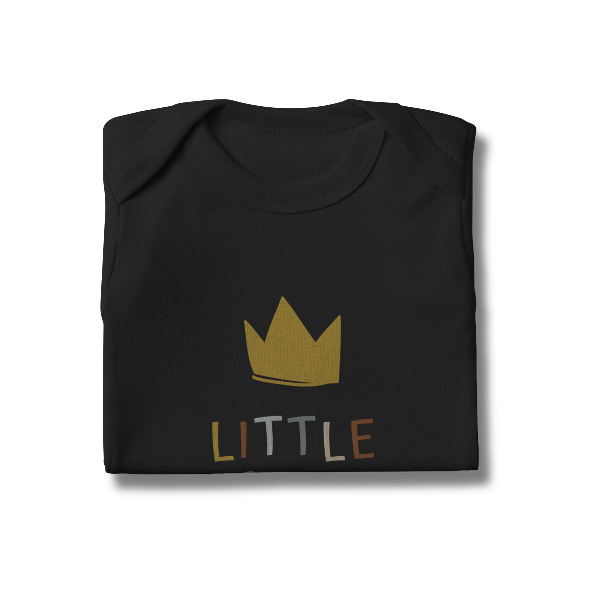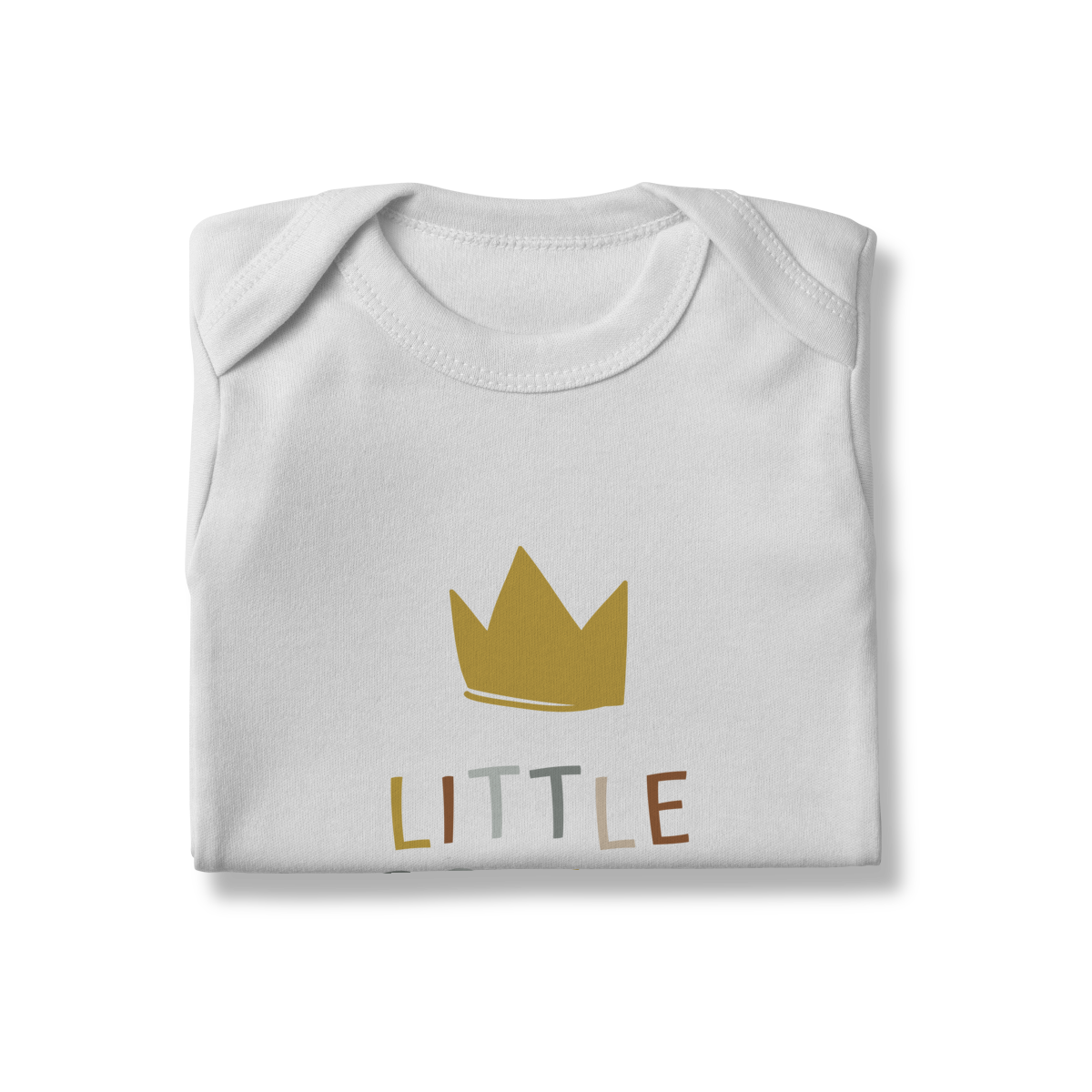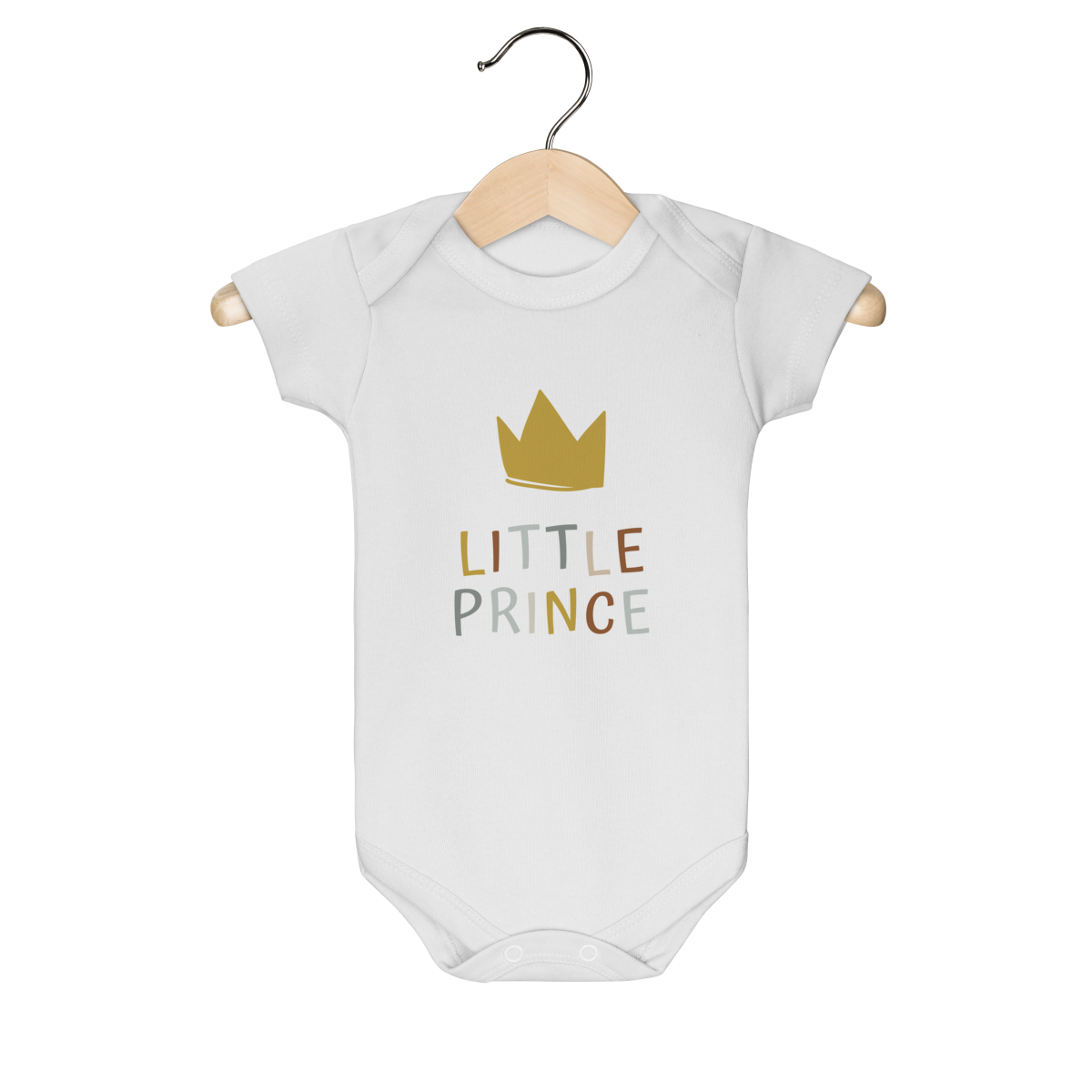 Com uma coroa dourada estilizada e a frase Little Prince, essa peça é perfeita para bebês que esbanjam charme. Feito para oferecer conforto, estilo e um toque especial nas fotos, passeios ou como presente carinhoso. Ideal para mães que amam peças minimalistas e com personalidade.