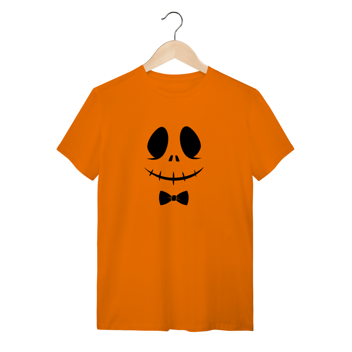 Camiseta laranja de Halloween com estampa minimalista de rosto de abóbora sorridente. Produzida em tecido leve e confortável, é perfeita para entrar no clima do Dia das Bruxas de forma prática e divertida. Ideal para festas temáticas, fantasias simples, ensaios fotográficos ou looks criativos de outono.