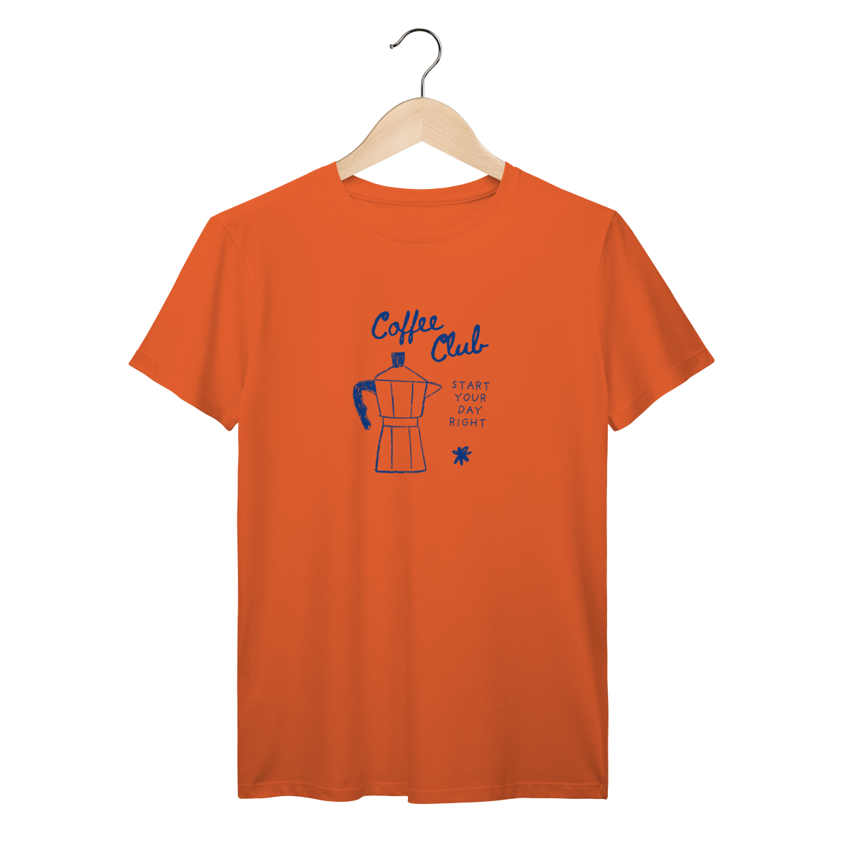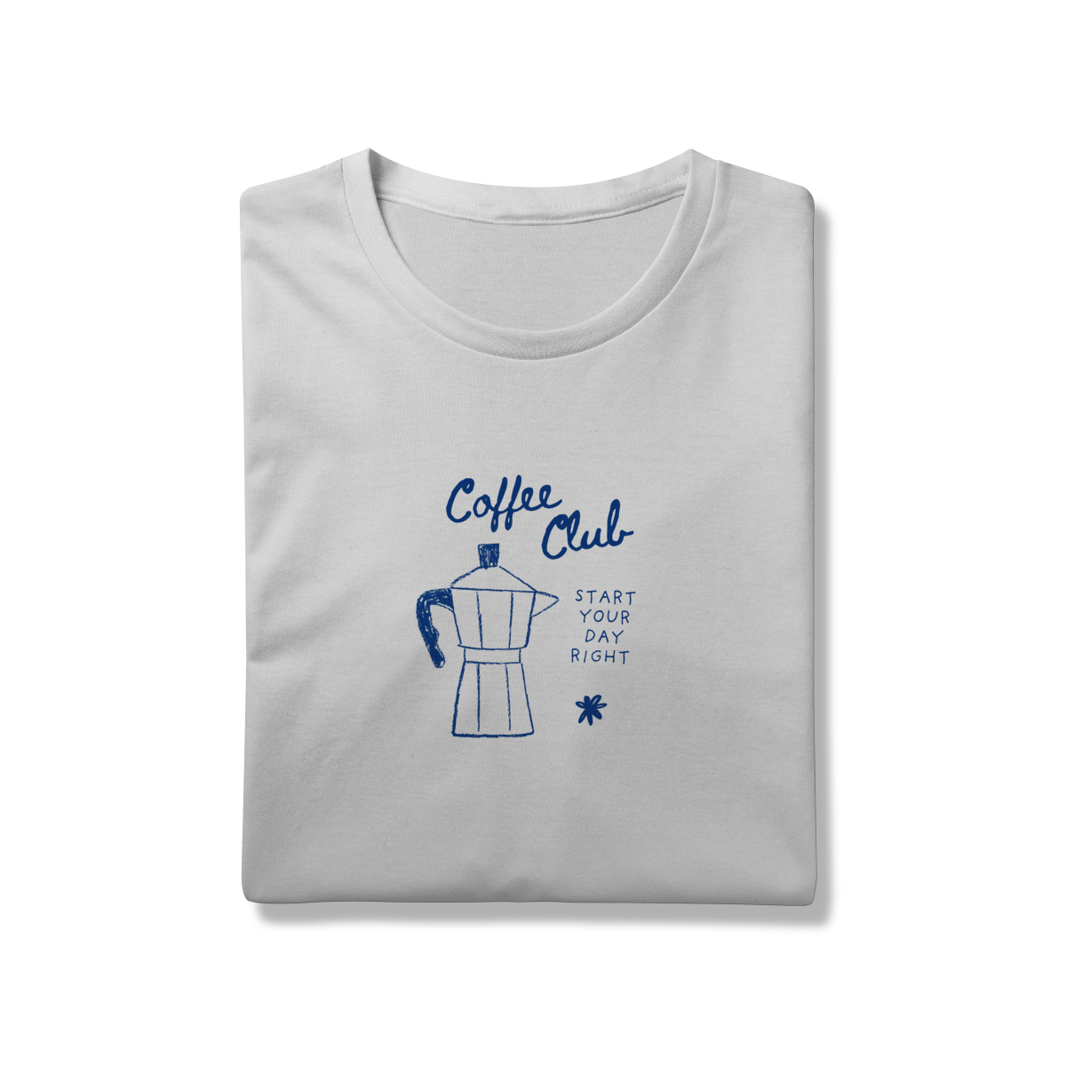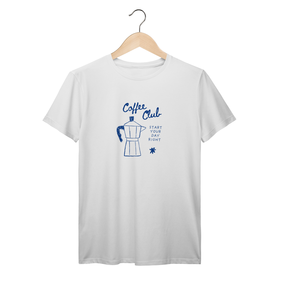 Camiseta Coffee Club com estampa minimalista de cafeteira italiana (moka). Perfeita para quem ama café, espresso e começar o dia do jeito certo. Camiseta confortável, estilosa e ideal para baristas, coffee lovers, apaixonadas por cafeteria e para quem não vive sem uma xícara de café. Ótima opção de presente criativo e original.
