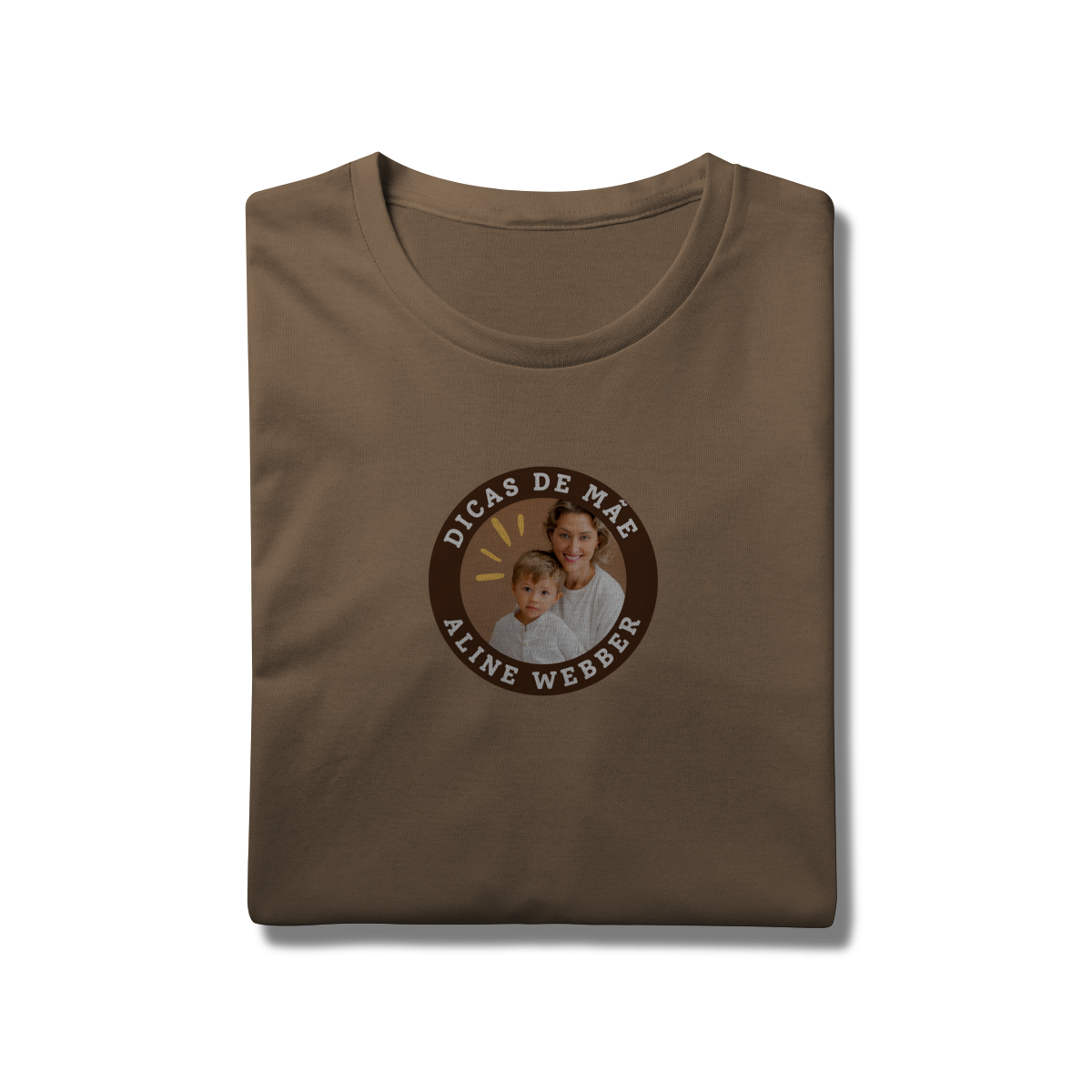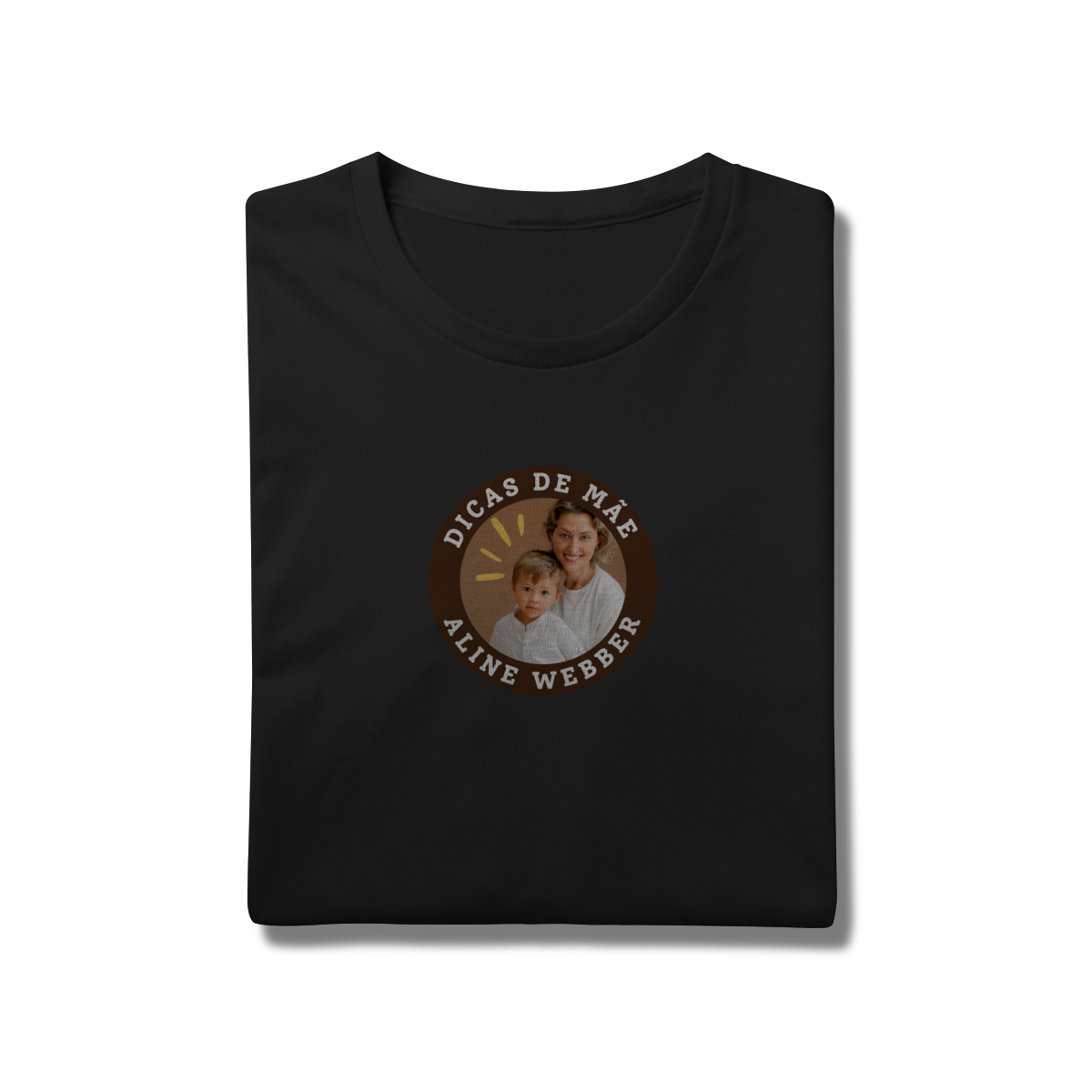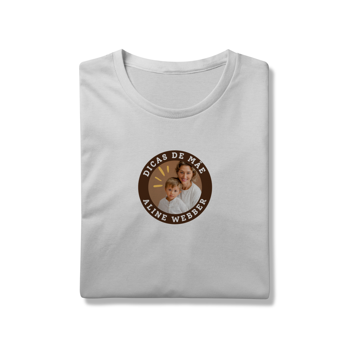 Camiseta exclusiva Dicas de Mãe por Aline Webber, perfeita para mães que valorizam conexão, afeto e estilo. Confortável, com estampa inspirada na maternidade real e na força das mulheres, essa peça combina com momentos leves e especiais com os filhos. Ideal para presentear mães modernas e autênticas.