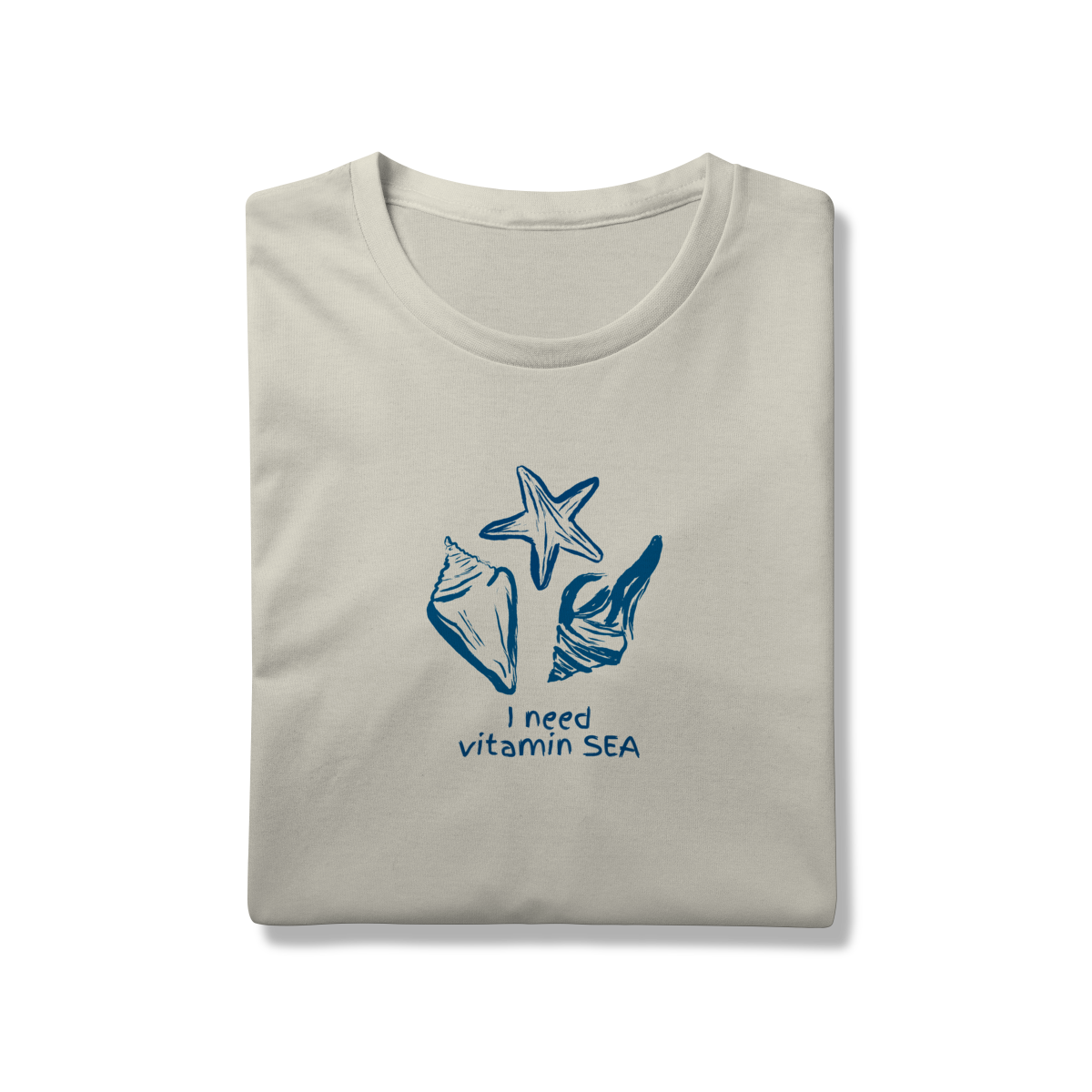 Camiseta “I Need Vitamin SEA” — leve, tropical e com vibe de verão o ano todo
