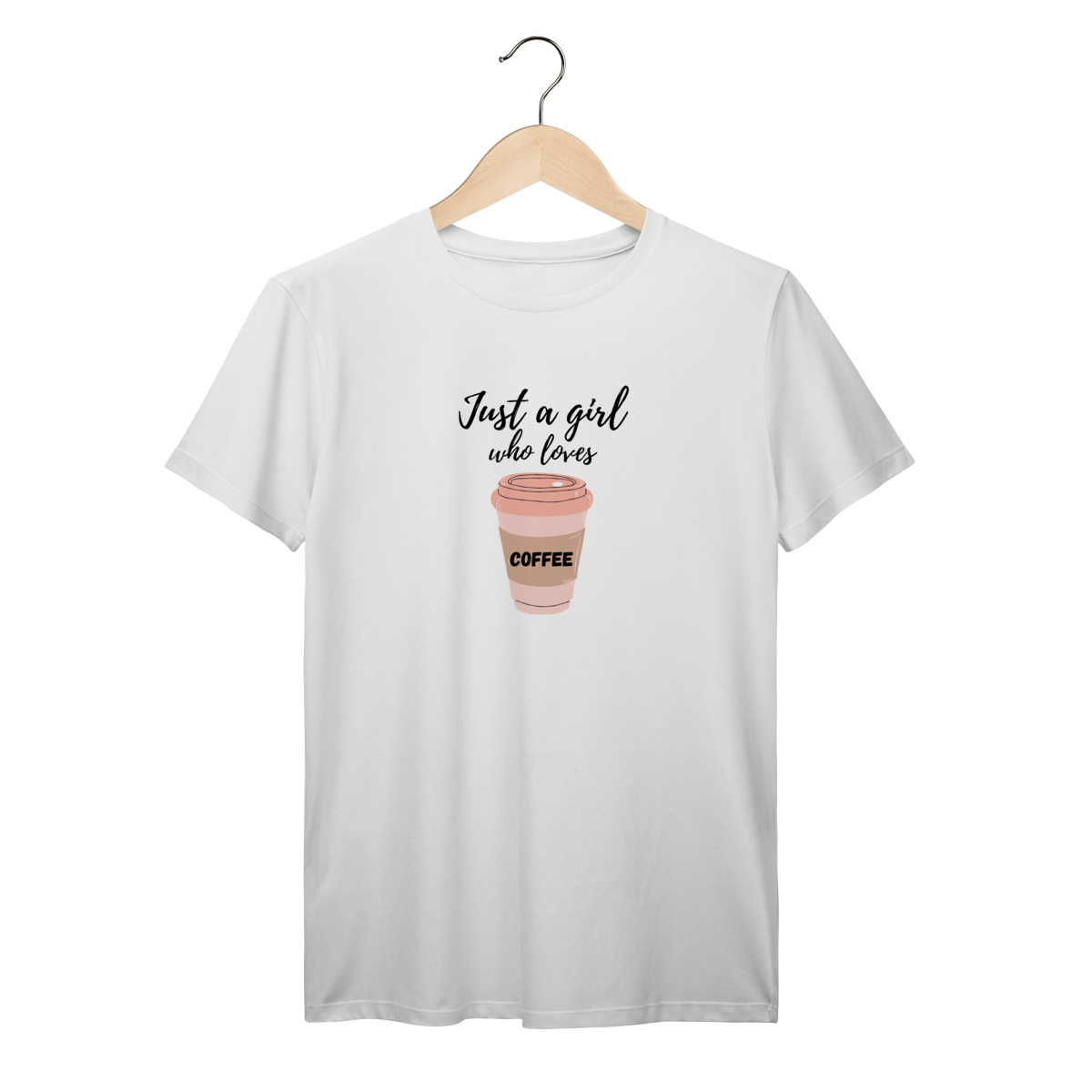 Uma camiseta charmosa e minimalista para quem simplesmente não vive sem café. A estampa “Just a girl who loves coffee” combina tipografia elegante e um copo de café em tons suaves, criando um visual moderno e feminino.