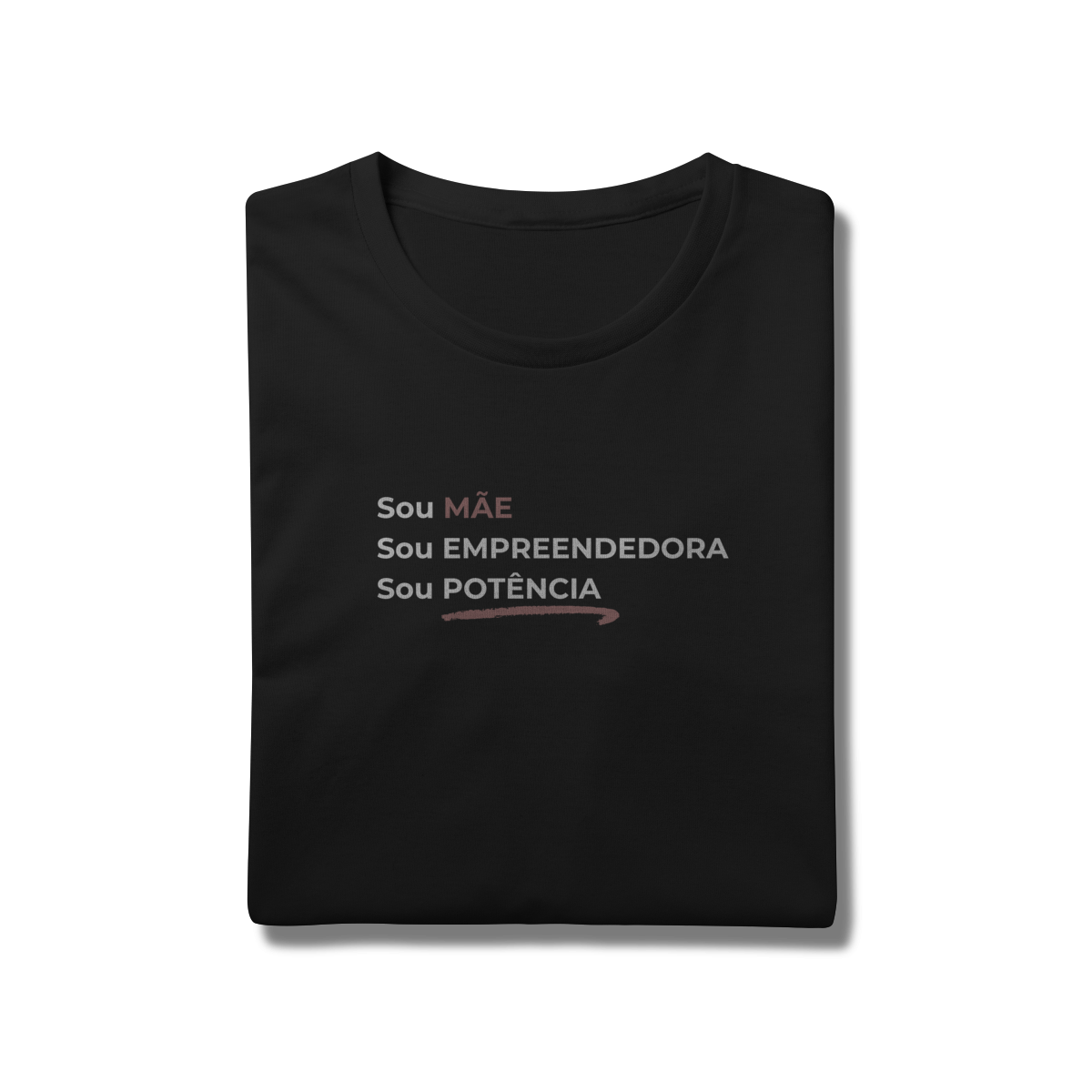 Camiseta “Sou mãe. Sou empreendedora. Sou potência.” — uma declaração de força e identidade feminina.