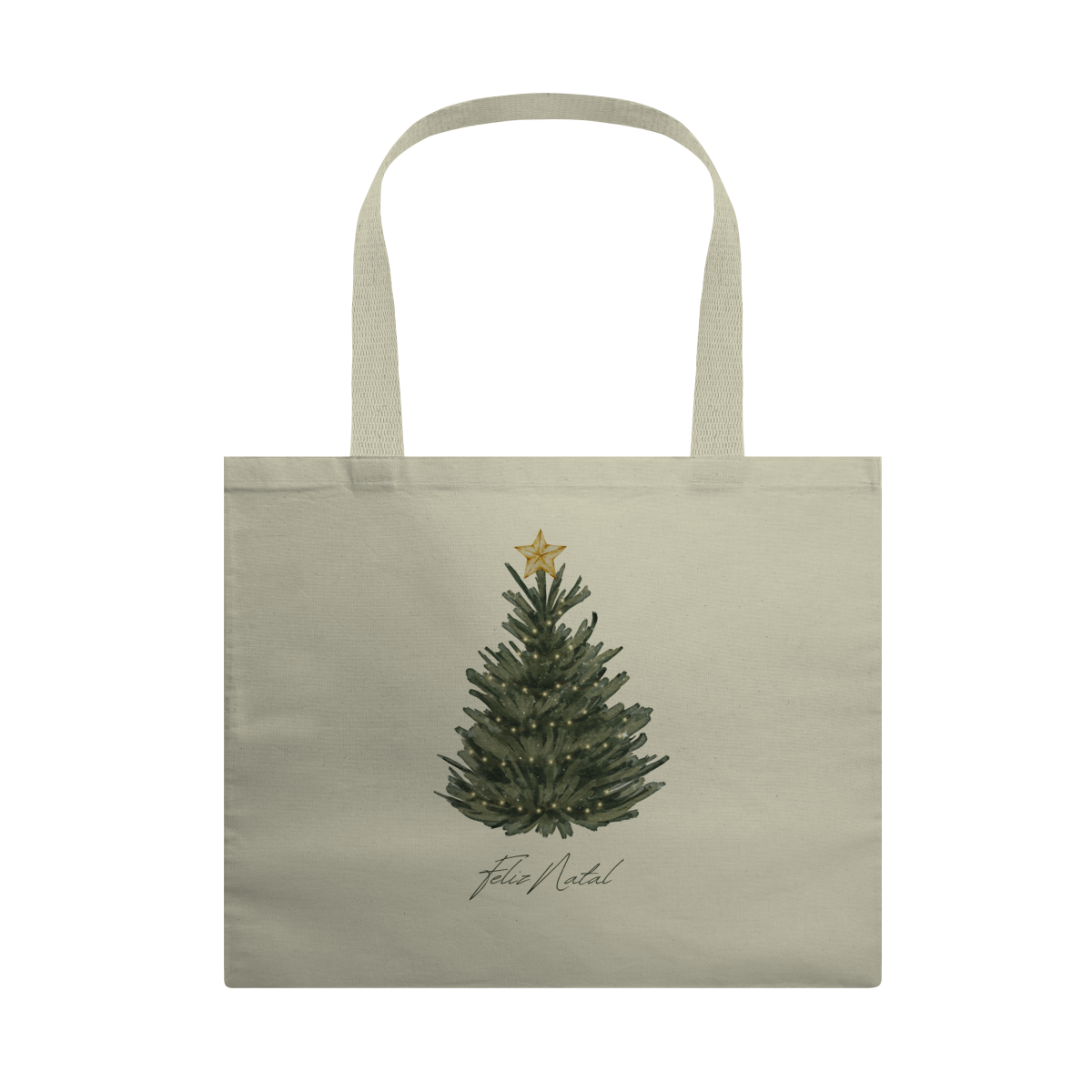 Celebre o Natal com leveza e elegância com esta ecobag encantadora, estampada com uma árvore de Natal em estilo aquarela e a frase “Feliz Natal” em lettering delicado.