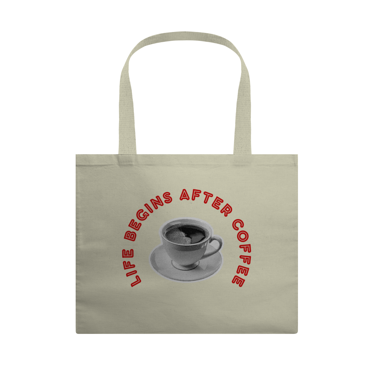 Ecobag “Life Begins After Coffee” — para quem só acorda depois do primeiro gole!